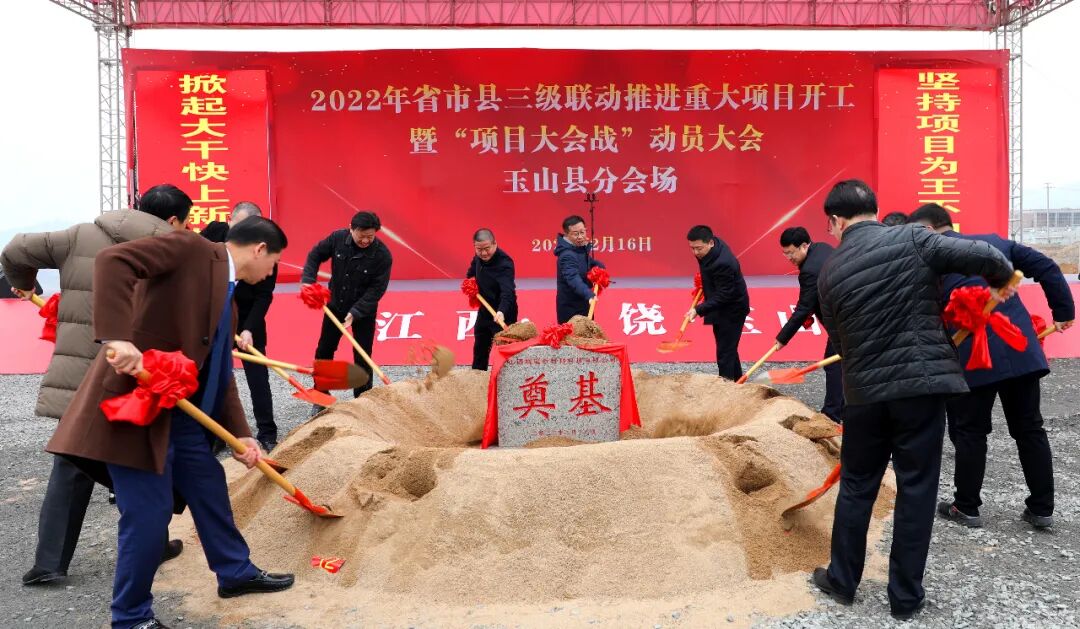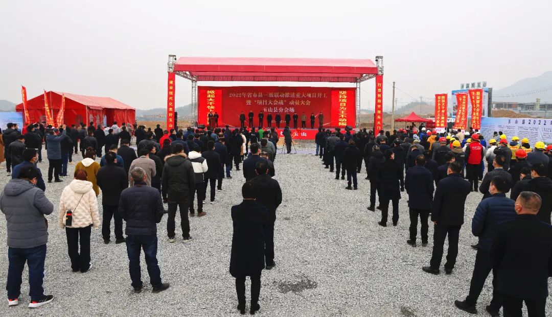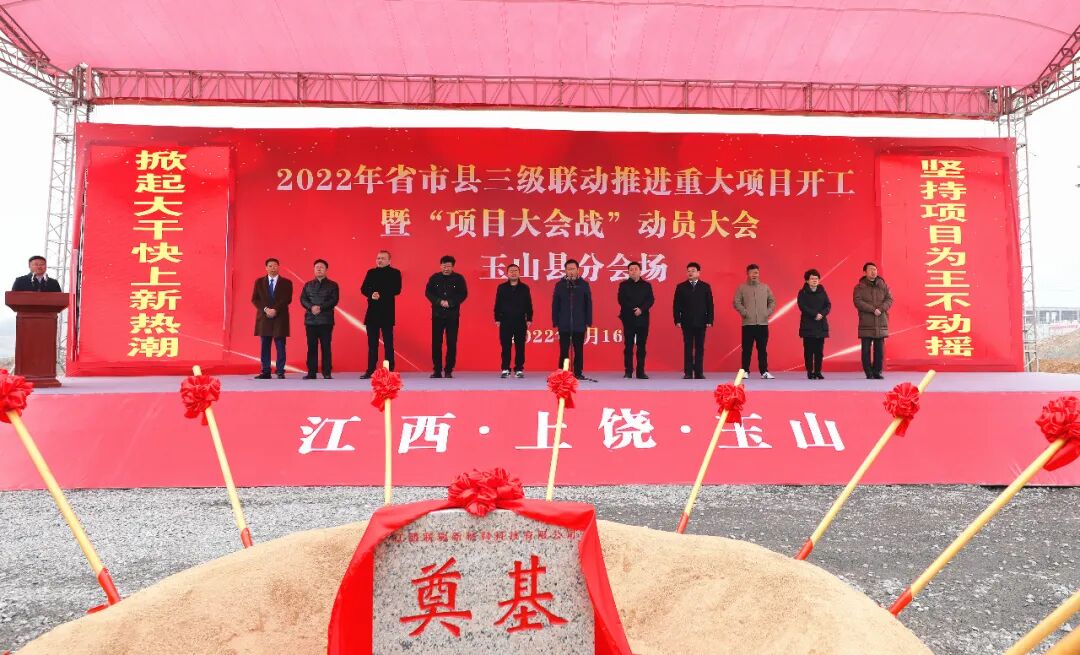 2月16日上午,在联瑞新材料项目现场收听收看2022年省市县联动推进重大项目开工暨“项目大会战”动员大会视频活动后,玉山县分会场举行了2022年省市县三级联动推进重大项目开工暨“项目大会战”动员大会活动。