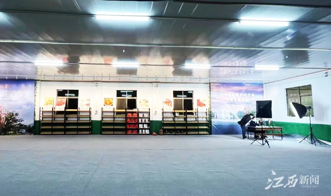▲永新县三湾乡汗江村利用闲置的库房打造三湾农产品网络直播基地