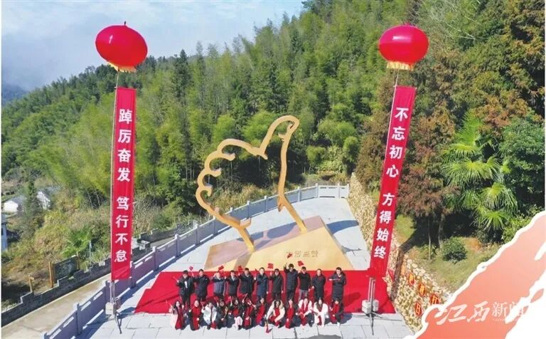 ▲1月26日,井冈山市茅坪镇干部在“为您点赞”雕塑前祝福党和祖国。 摄影 | 江西日报记者 李 劼