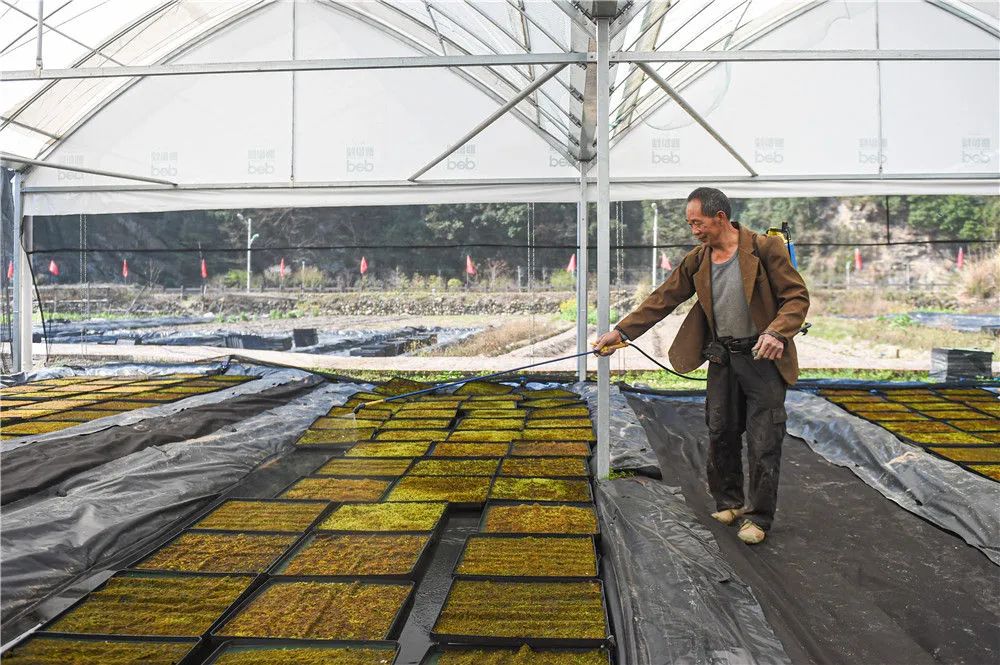隆冬时节,浙江景宁畲族自治县毛垟乡成片的苔藓种植大棚里,村民拔草、浇水、塑型,一片忙碌。毛垟乡自2019年尝试发展苔藓种植,已形成成熟的苔藓产业链。