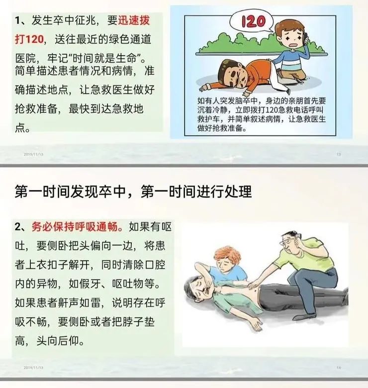 舍近求远:脑卒中病人早期处理必须分秒必争,有的家属只顾到有名气的医院而延误抢救时间。希望新的一年大家健健康康,若患卒中也能够在正确的应急处置下得到最高效的救治。 切记,发现有“中风”等症状,勿要随便服用药物,如出血性脑卒中患者,在服用阿司匹林后,则会加快病情恶化! 最正确的方法就是“紧急就医”,“紧急就医”,“紧急就医”!