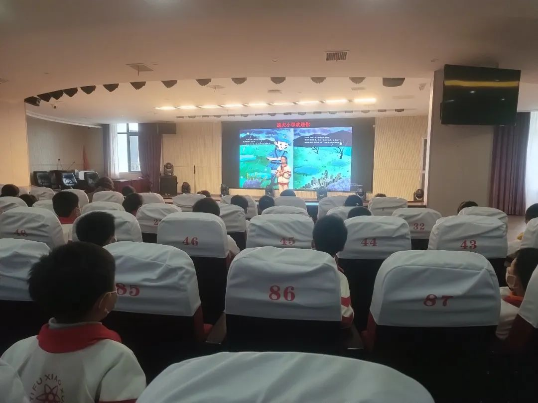 宣讲活动中,四(3)中队黄可馨同学以《七根火柴——红军长征故事》为题,娓娓讲述了发生在1935年8月中国工农红军长征过草地时极其艰苦的生活,饱含深情地描述生命垂危的红军战士顽强地保存七根火柴的故事。