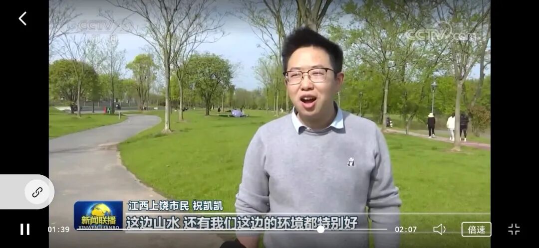 4月4日晚,央视《新闻联播》节目播出的《清明时节 春和景明赏春光》报道了玉山金沙溪湿地公园已成为不少市民踏青赏花的好去处。
