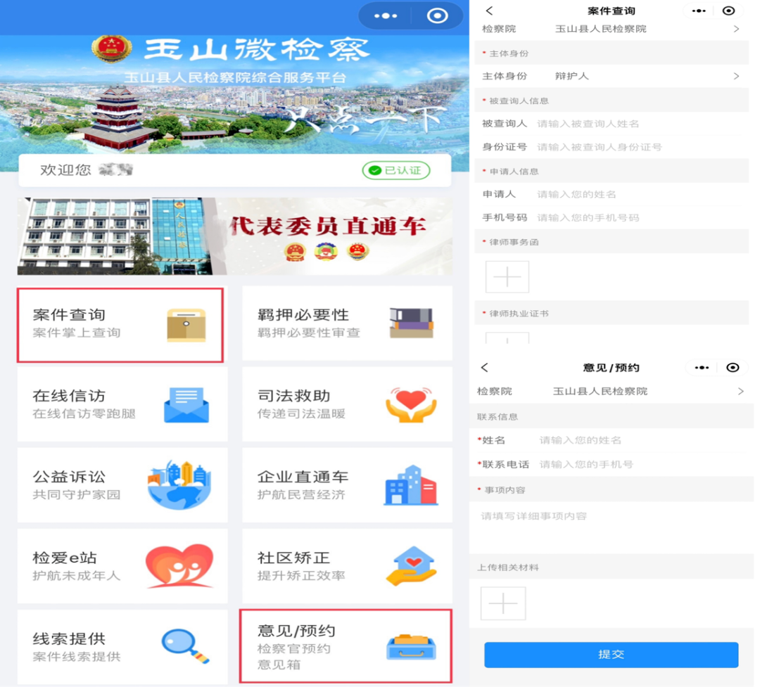 为进一步维护诉讼参与人诉讼权利,保障律师执业权利,践行“以人民为中心”的司法理念,推动“我为群众办实事”实践活动走深走实,根据当前疫情防控形势和要求,玉山县人民检察院近期推出“玉山微检察”小程序,提供在线案件查询以及预约检察官的平台,高效衔接律师网上阅卷工作。