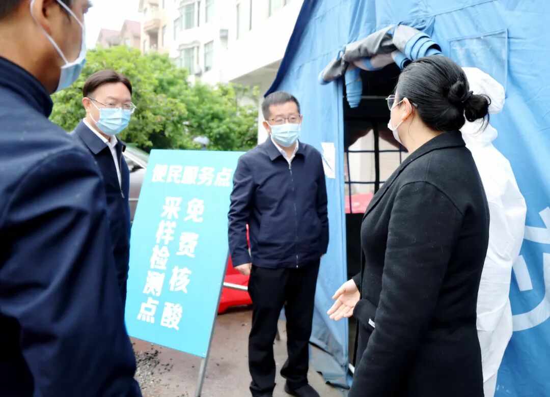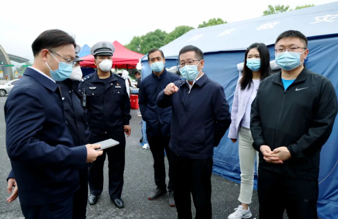 在仙岩镇竹川村、下镇镇生姜村、沪昆高速玉山出口免费核酸检测便民服务点和货运车辆转运点时,郑国良仔细了解、查看车辆登记、人员信息登记、核酸检测采样等情况,向值班值守人员表示慰问。