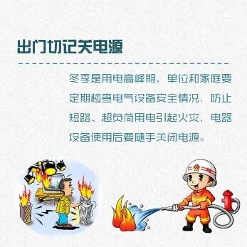 单位和家庭要定期检查电气设备安全情况,防止短路、超负荷用电引起火灾,电器设备使用后要随后关闭电源。