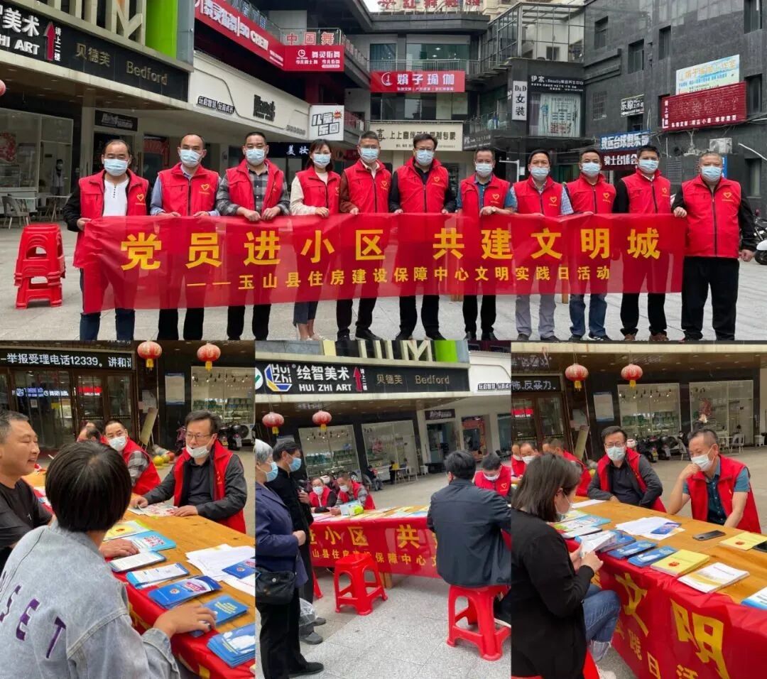 在天龙广场,县住房建设保障中心组织党员干部开展主题为“党员进小区 共建文明城”的文明实践日活动,为来往群众发放防疫知识手册、解读《上饶市住宅物业管理条例》,并接受群众咨询,为他们答疑解惑。