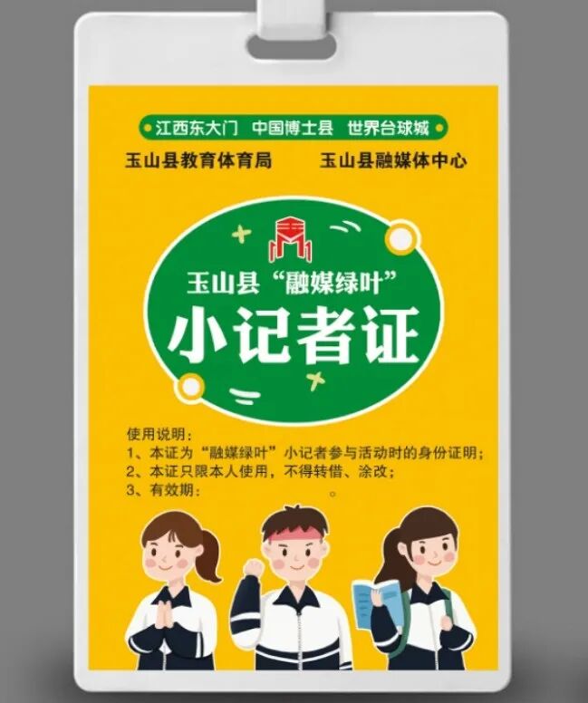 为全面贯彻落实《中共中央办公厅、国务院办公厅印发<关于进一步减轻义务教育阶段学生作业负担和校外培训负担的意见>》精神,丰富我县青少年学生课外生活,培养学生第二课堂的实践性、兴趣性、感悟性、体验性,促进德智体美劳全面均衡发展,玉山县教育体育局和玉山县融媒体中心面向全县各中小学校联合组建玉山县“融媒绿叶”小记者团。