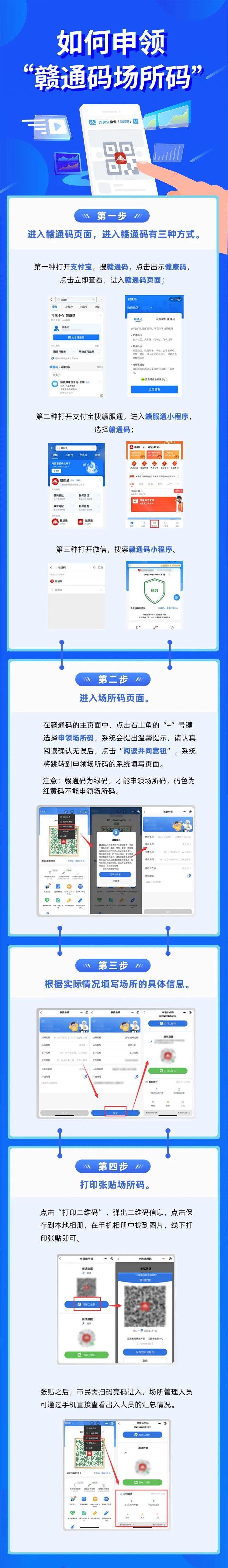 根据国务院联防联控机制《重点场所重点单位重点人群新冠肺炎疫情常态化防控相关防护指南》(2021年8月版)和常态化疫情防控有关政策要求,为切实提升我省疫情防控能力,提高疫情发生后流调溯源速度,江西省基于“赣通码”平台研发了“场所码”。