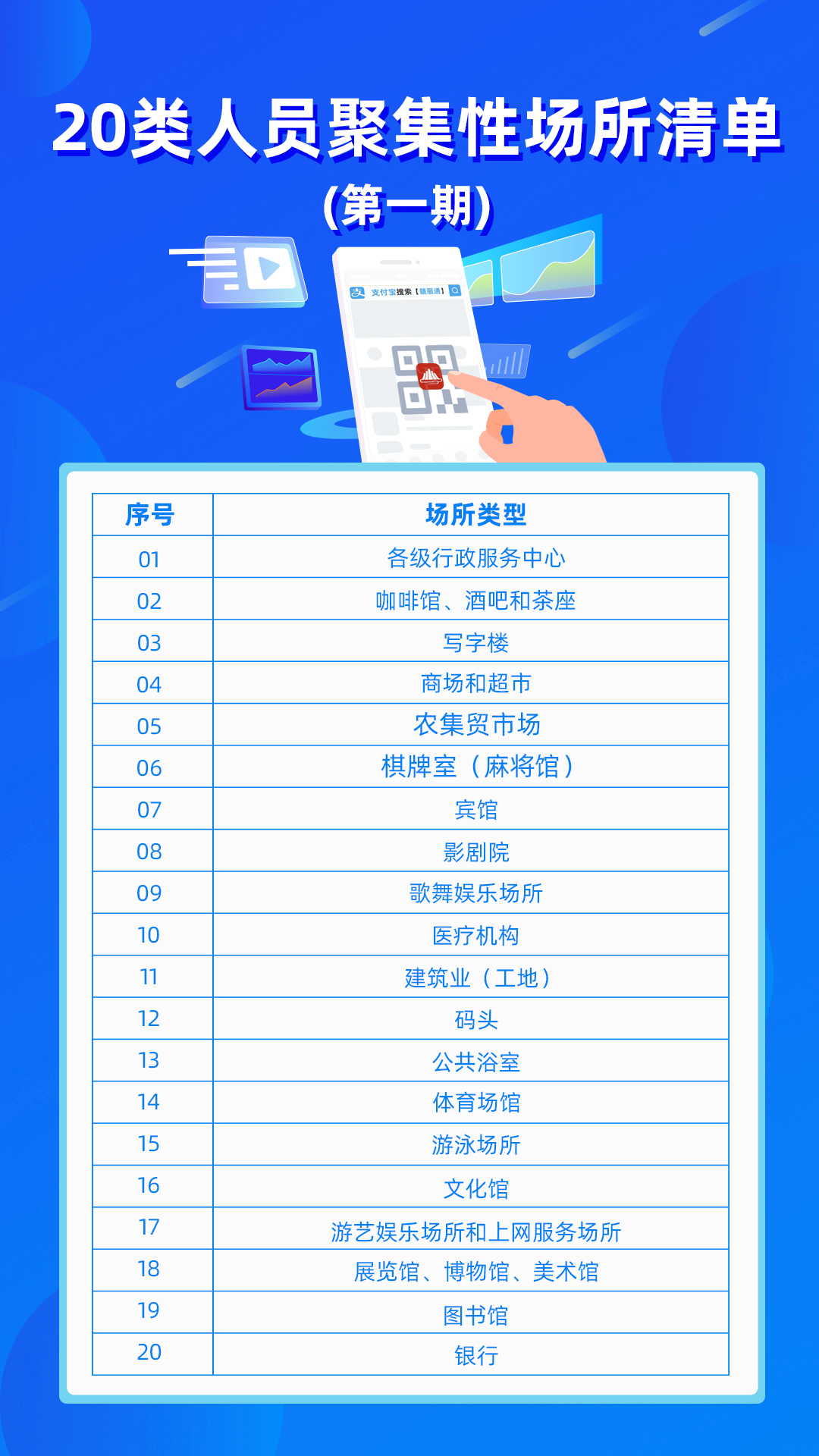 市民进入行政服务中心、农贸市场、商场超市、写字楼、宾馆饭店、医疗机构、体育场馆、银行等重点场所,需要完成“赣通码场所码”扫码核验工作。对于因年老、无手机等情况无法提供“赣通码场所码”的人群,可以采用纸质登记。