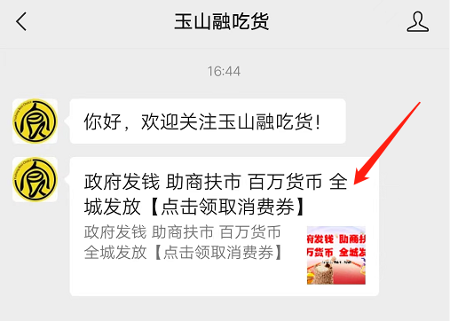 第1步:扫码关注【玉山融吃货】微信公众号。