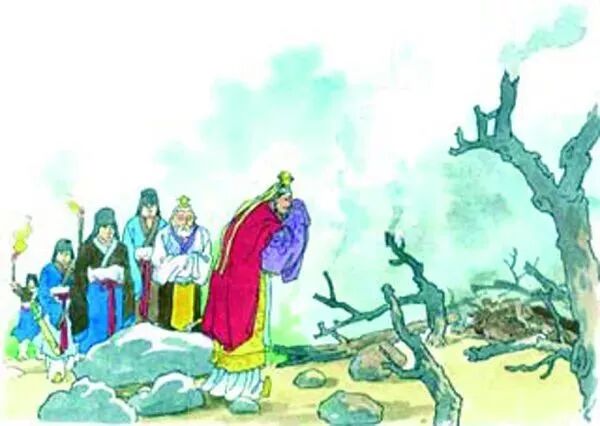 晋文公执政后,对那些和他同甘共苦的臣子大加封赏,唯独忘了介子推。有人在晋文公面前为介子推叫屈。晋文公猛然忆起旧事,心中有愧,马上差人去请介子推上朝受赏封官。可是,差人去了几趟,介子推不来。晋文公只好亲自去请。可是,当晋文公来到介子推家时,只见大门紧闭。介子推不愿见他,已经背着老母躲进了绵山(今山西介休县东南)。晋文公便让他的御林军上绵山搜索,没有找到。