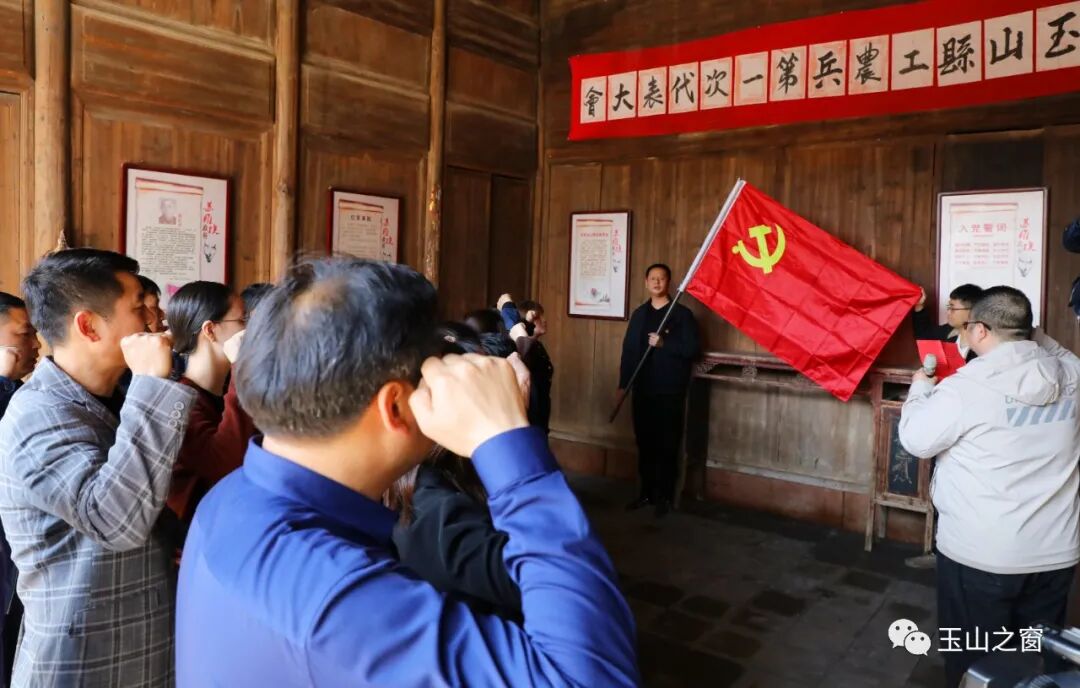 “我志愿加入中国共产党……随时准备为党和人民牺牲一切,永不叛党。”4月9日,一声声庄严的誓词从下塘乡吕畈村苏维埃旧址传出。该乡机关党支部党员、各村两委干部40余人,面对鲜红的党旗,紧握右拳重温入党誓词。