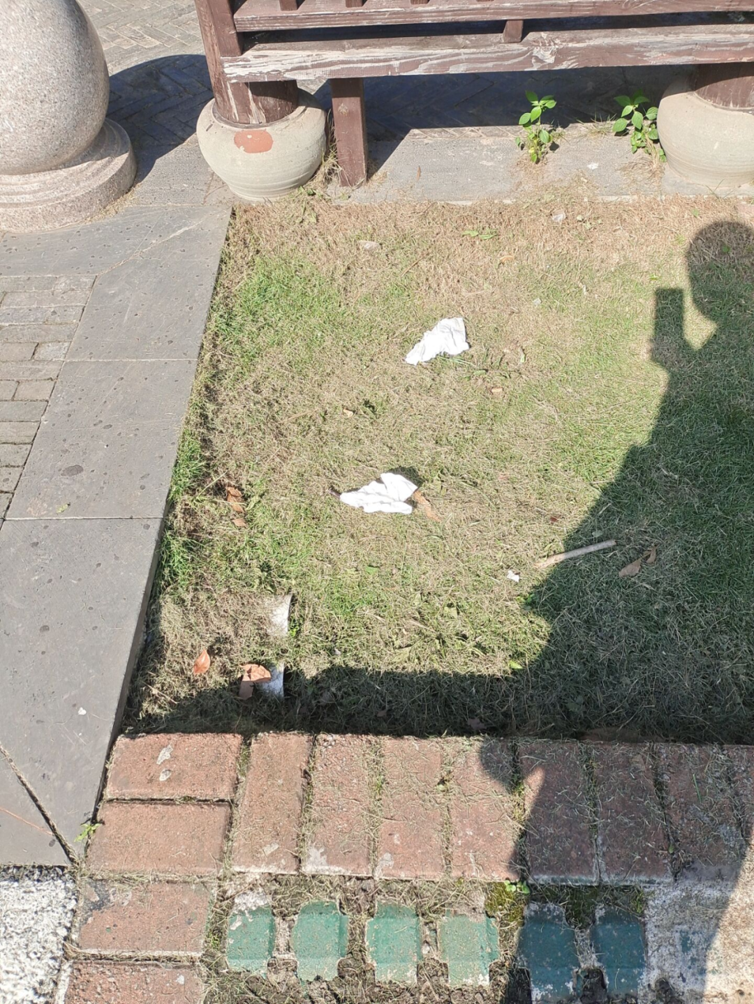 草坪上、花坛里被随意丢弃的口罩、卫生纸、一次性用品等垃圾,让景区的环境整洁度大打折扣。 这样的行为既不文明,也不安全,提醒广大市民多加注意。