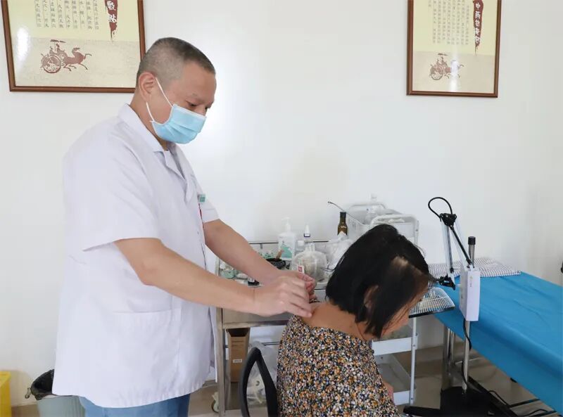 萍乡市湘东区,中医师正在为群众进行针灸治疗。李佳钰摄