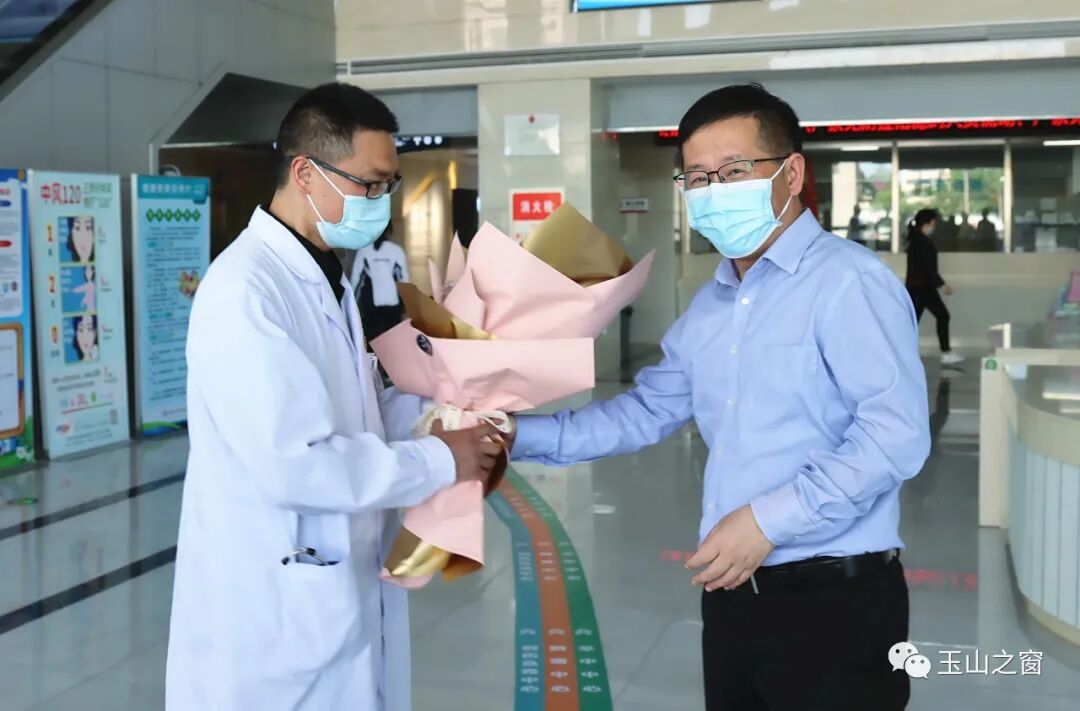 郑国良来到黄家驷医院,同“玉山县先进工作者”胥亦龙亲切握手,详细了解他的工作情况。胥亦龙是黄家驷医院医生,2017年3月25日晚上8点,他正背着刚满3个月的孩子散步回家。途经急诊科发现有危重病人,来不及放下背上的孩子直接参与指挥抢救,经过3个多小时的努力,病人抢救成功,他背着孩子抢救病人的举动感动了玉山。2017年获评“江西好人”、“中国好人”。郑国良称赞他以实际行动展现了“医者仁心”的高尚品德,希望继续发挥榜样和示范作用,为玉山医疗事业发展作出更大的贡献。