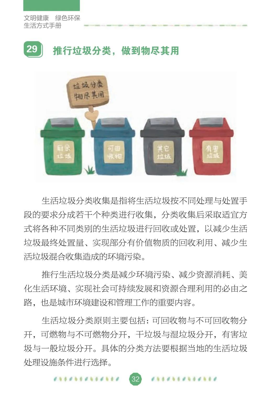 今年4月是第33个爱国卫生月。在全国爱卫办、中央文明办、健康中国行动推进办的指导下,中国健康教育中心组织专家编写了《文明健康 绿色环保生活方式手册》,分别从讲文明、铸健康、守绿色、重环保4个角度,向公众介绍如何在日常生活、工作和学习中积极践行文明健康、绿色环保的生活方式,切实增强公众的节约意识、环保意识和生态意识,维护自己和家人的健康,实现可持续发展。
