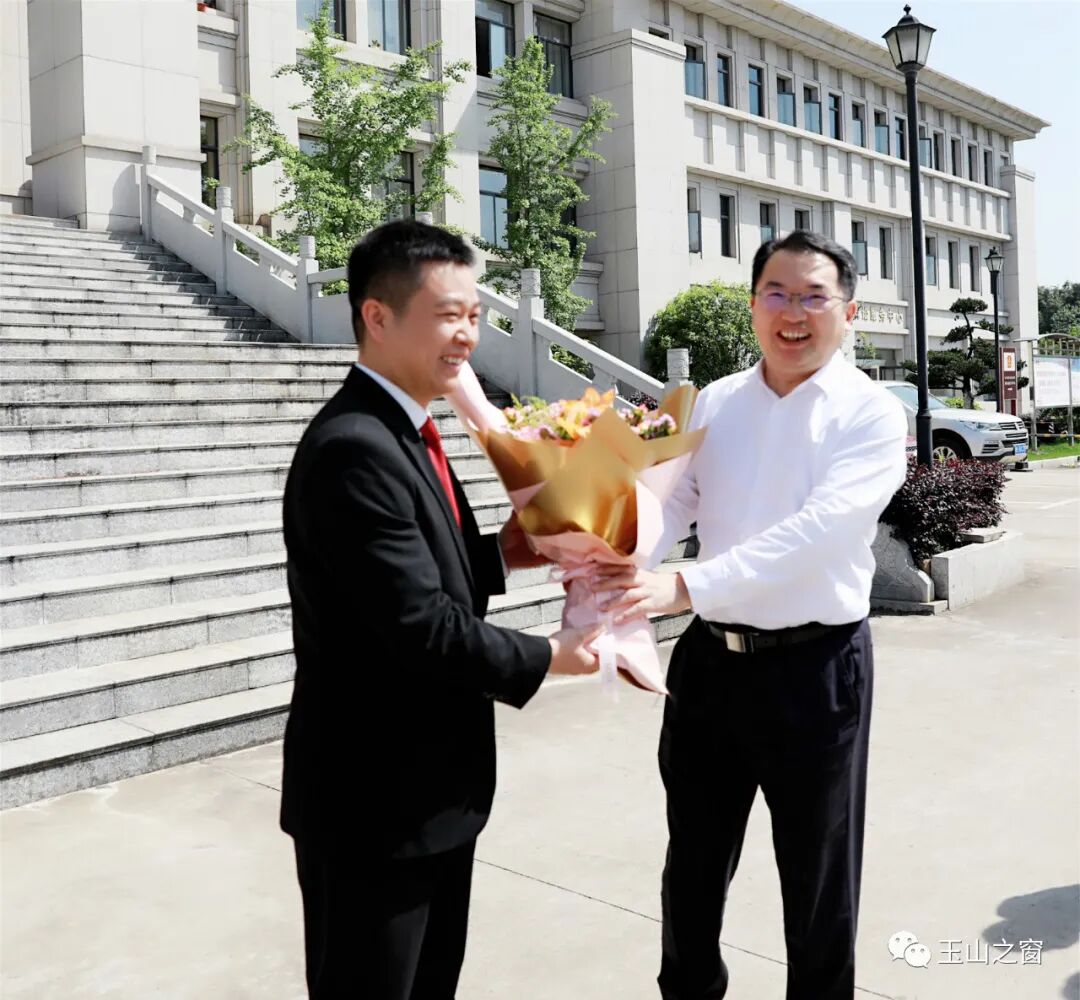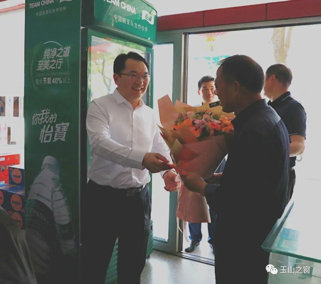 在江西众光照明科技有限公司,徐树斌为玉山县劳动模范王贤龙送上鲜花和慰问金,对他多年来奋战在企业一线,由一名普通员工成长为县劳模表示赞许。希望他继续坚守岗位、尽职尽责、守正创新,为公司发展壮大再立新功。