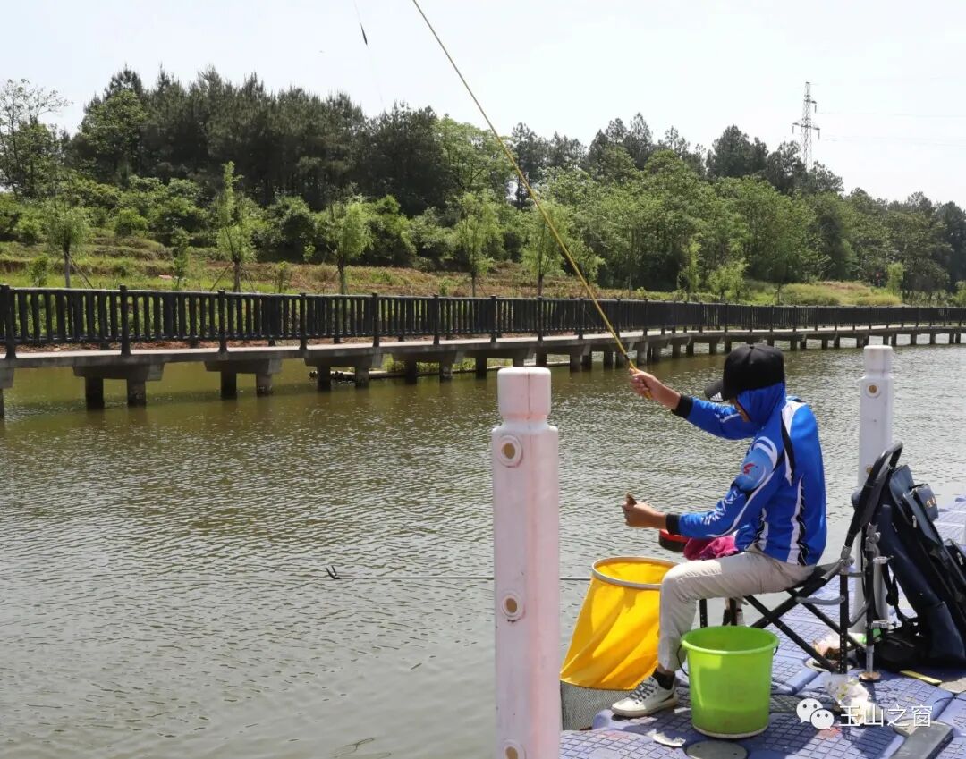 拾级而下,一排垂钓爱好者专注地凝视着水面上的鱼漂。“我早上七点就到这边钓鱼,现在差不多快钓了两斤鱼了。”邱先生熟练地收杆,将鱼放入网袋中,他说,“和平水库这边的环境很不错,而且离我家也近,我平常都会来钓鱼,今天也趁着假期来放松一下。”