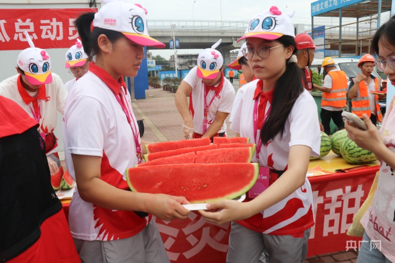 志愿者们准备送出甘甜的西瓜(央广网记者 刘培俊 摄)